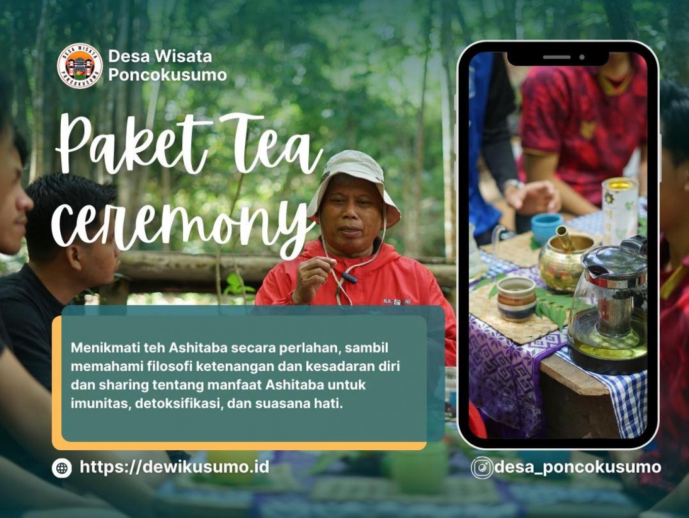 Upacara Teh Ashitaba adalah pengalaman tradisional Jepang, yang di lakukan juga sebagai atraksi wisata di Pondok Ashitameru Desa wisata Poncokusumo, yang menawarkan kesempatan untuk menikmati teh hijau Ashitaba sambil menikmati suasana yang tenang dan damai. Ashitaba adalah tanaman yang terkenal dengan khasiatnya yang dapat meningkatkan kesehatan dan kecantikan.